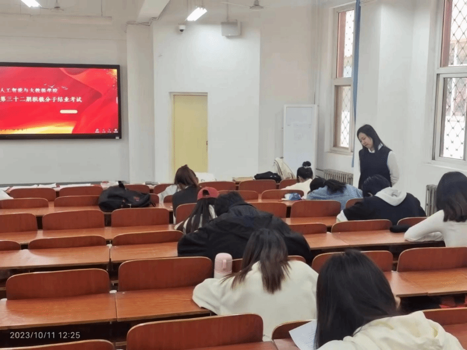 为检验入党积极分子思想理论修养和团课培训学习成果,考察培训学员对团的基本理论知识的掌握,端正他们的入党动机,提高入党觉悟。人工智能与大数据学院于10月11日在主教1-2开展第32期入党积极分子培训班结业考试。本次考试由学院团总支书记王珊老师和其他学生干部共同监考。