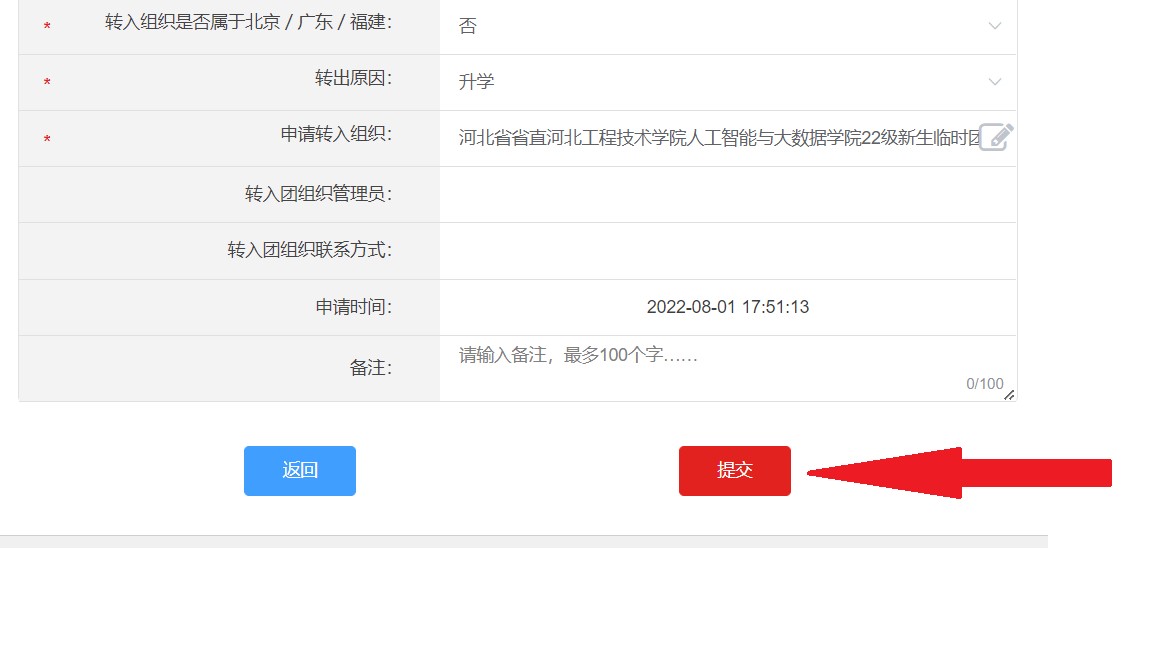 申请转入组织--团河北省委--省直团工委--taptap点点官方网站团委—2022人工智能与大数据学院新生(专接本)临时团支部。然后填写资料,带* 为必填项。