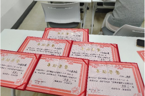 最后,评委们为获奖选手颁奖和颁发荣誉证书并合影留念。各位评委老师也表示了对本次大赛组织工作的认可,赞赏了参赛选手们的优秀表现,并鼓励学生们通过赛事及相关教育活动,明确自己的理想信念。