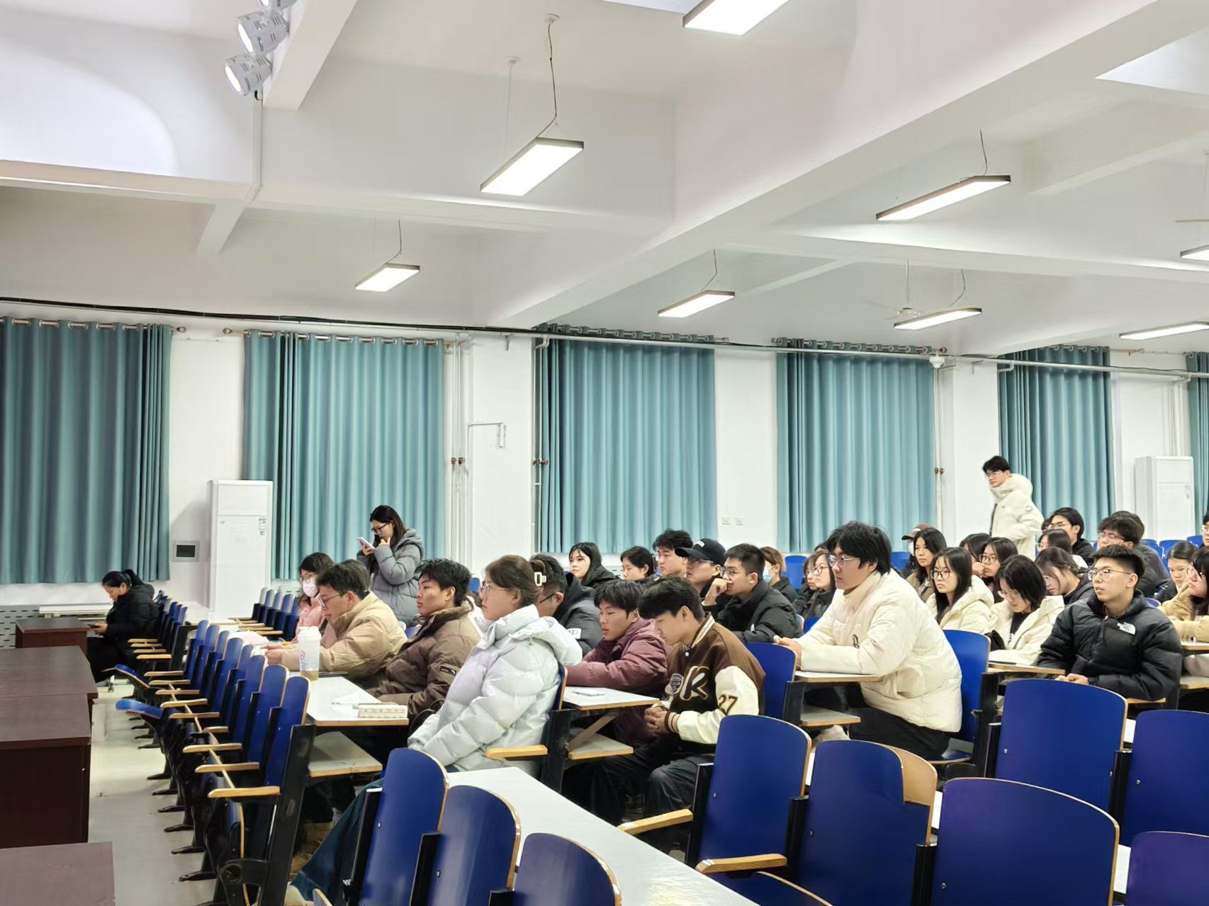 在互动环节,同学们积极提问,就职业发展规划、岗位晋升渠道、实习实践机会等问题进行了深入交流。现场气氛热烈而融洽。
