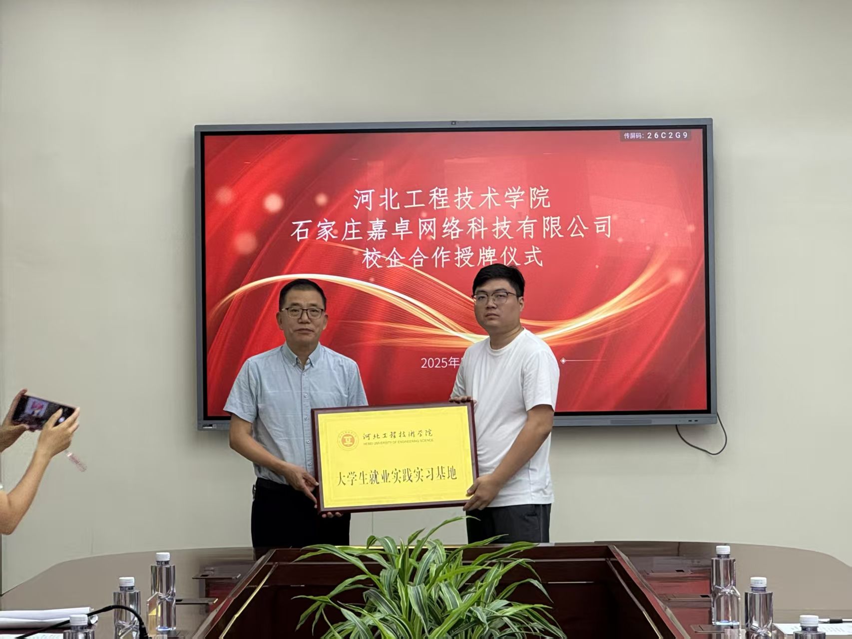 为深化产教融合、推动协同育人,搭建人工智能领域人才培养与产业需求对接的优质平台,taptap点点官方网站于2025年 5月21日10时在会议中心第二会议室隆重举行大学生就业实践实习基地授牌仪式。出席领导;taptap点点官方网站副校长姜新佩,taptap点点官方网站院长王静红,taptap点点官方网站学生工作处副处长张静,taptap点点官方网站党总支书记、学管副院长尹钧。石家庄嘉卓网络科技有限公司、普睿机器人(河北)有限公司、宙安科技(北京)有限公司等企业代表应邀参加。此次活动由尹钧院长主持。