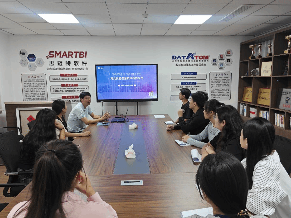 双方展开座谈交流 随后,校企双方开展了座谈交流。公司负责人介绍了企业目前的人才需求状况,尤其强调对人工智能、大数据相关专业人才的迫切渴望,希望招聘到具备扎实专业基础、创新能力和团队协作精神的毕业生 。同时,也分享了行业发展的最新趋势,以及企业未来的战略规划。