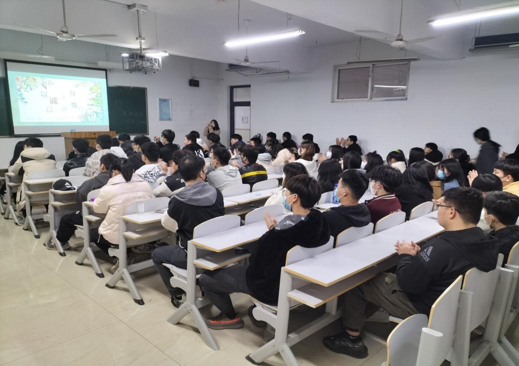 3月14日,人工智能与大数据学院各社团负责人以及各班班长、团支书在团总支书记苗璋寒带领下,于主教1-2举办“诚信基石,弘扬风采”主题团课活动,培育和践行以社会主义核心价值观,大力弘扬诚信文化,切实提升学生的诚信品质,增强自律意识和社会责任感,让诚信之花开满校园。