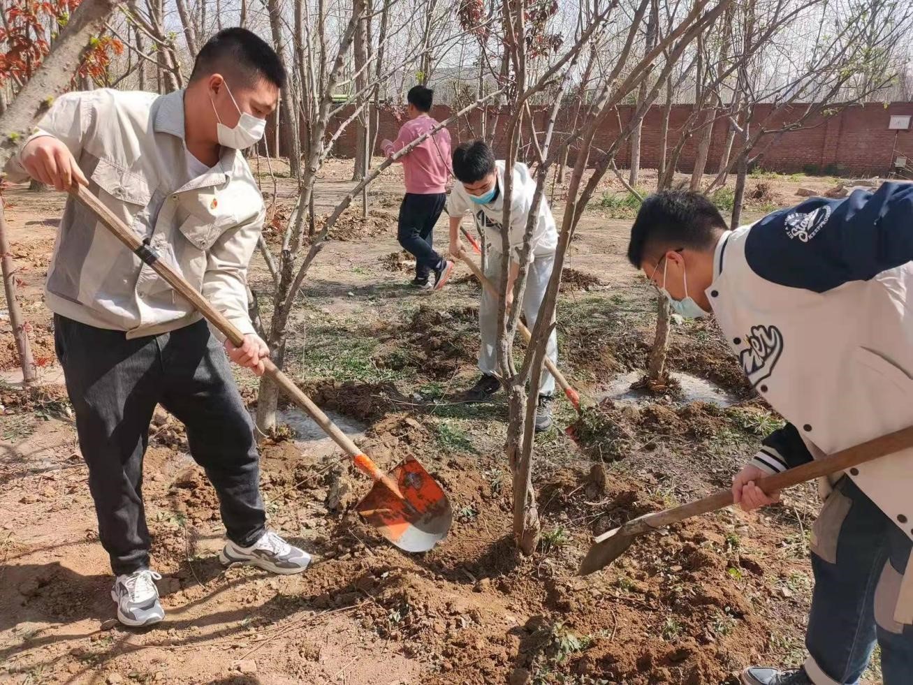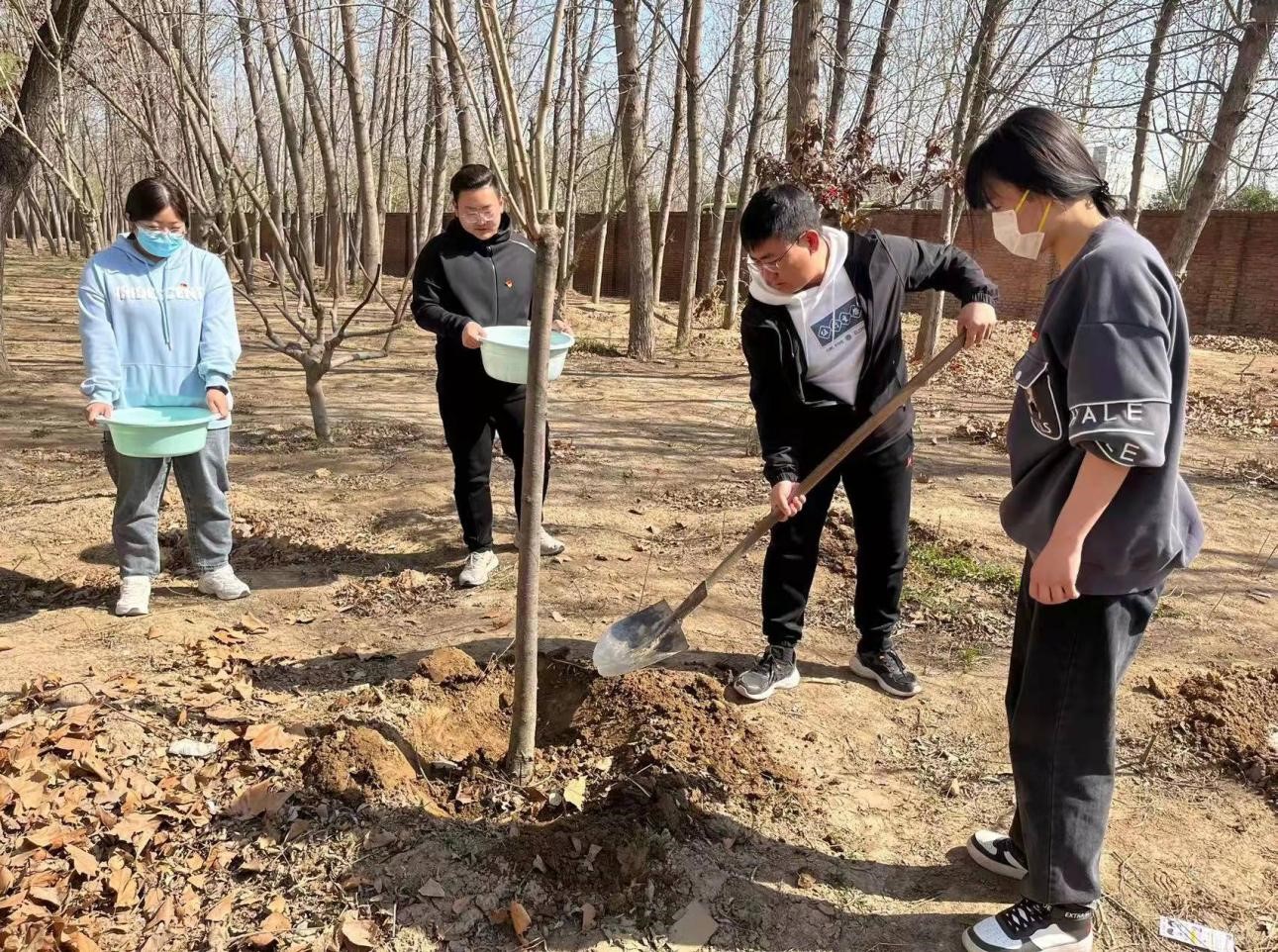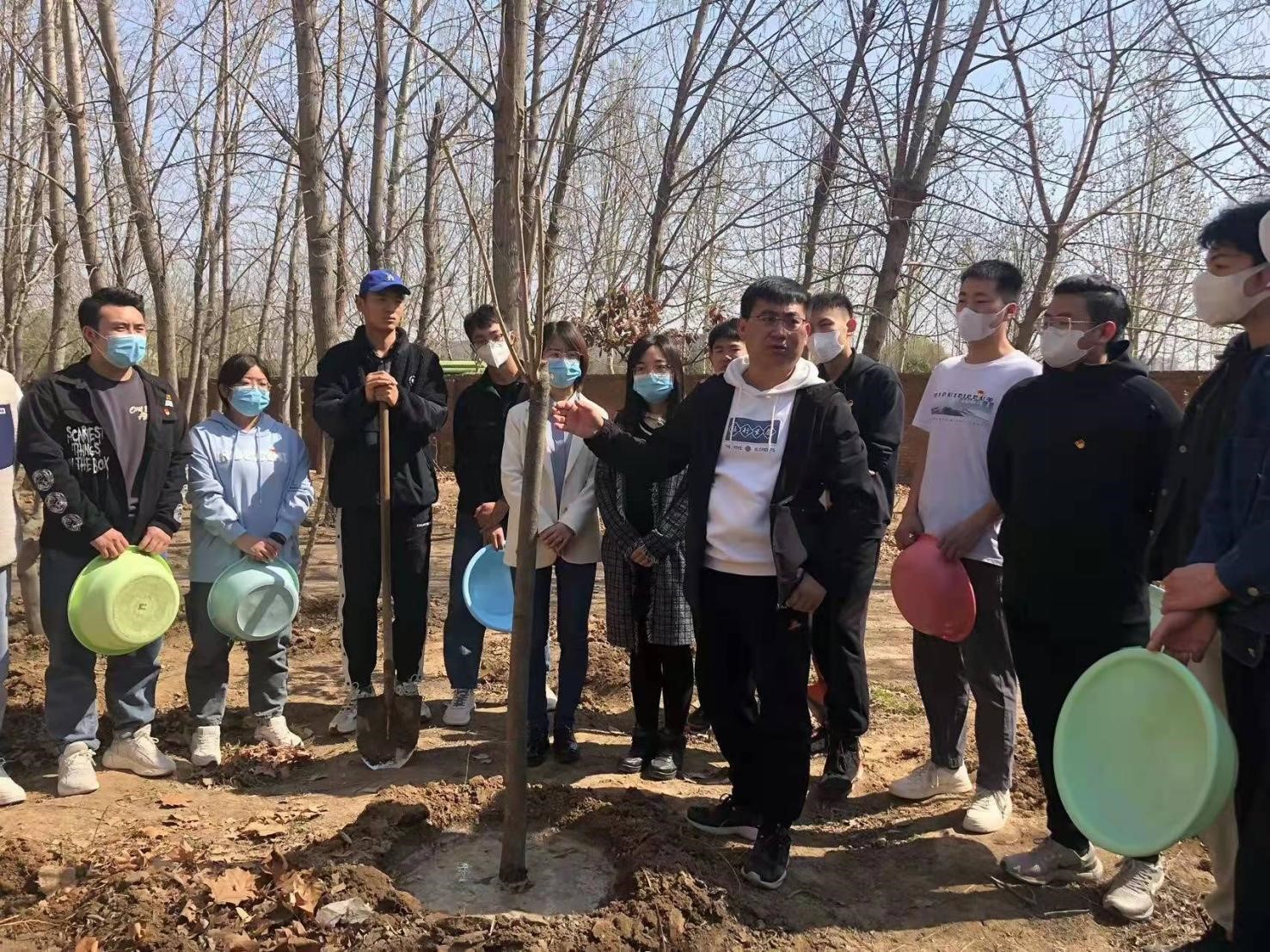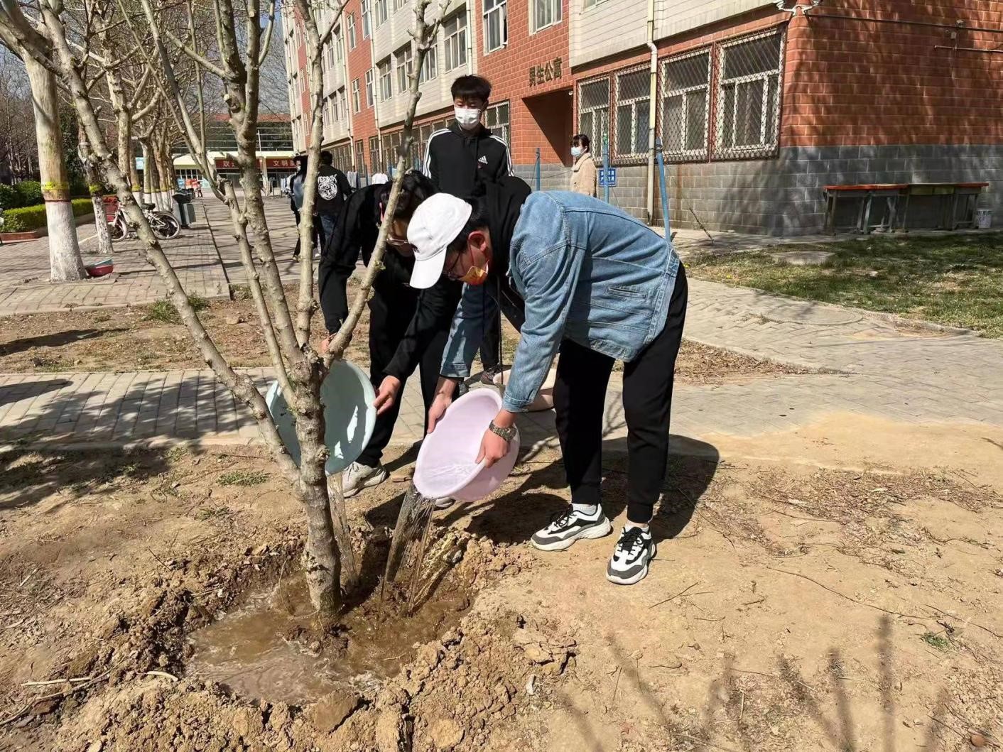 为了贯彻“用行动去传播”的环保理念,激发学生们爱木造林的感情,促进校园绿化,保护生态环境,人工智能与大数据学院于2022年4月3日上午10:00,在三号宿舍楼东侧组织“春暖花开学生党员志愿浇树活动”,本次活动由人工智能与大数据学院党总支书记、学管副院长尹钧带领,团总支书记苗璋寒、辅导员代表刘晓玲老师、王凤老师及全体学生党员参与。