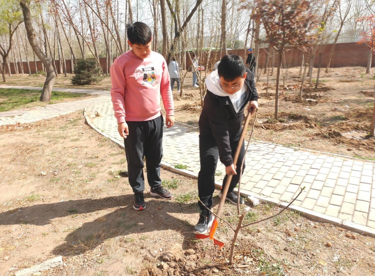 学生党员积极实践培土浇水