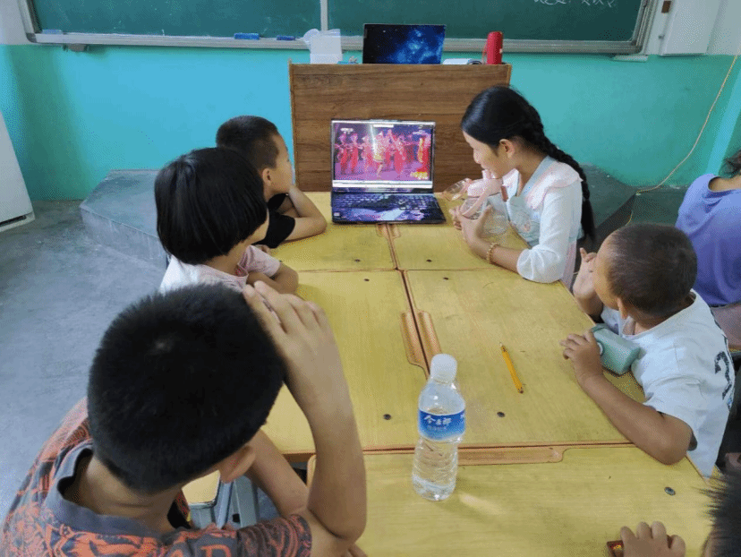 小朋友们在观看民族舞蹈视频