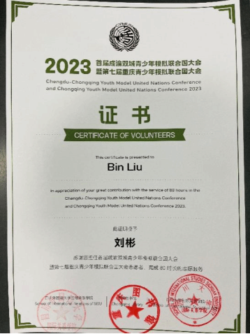 在担任塞尔维亚代表之外,我也是一名志愿者,很荣幸能够参与到模联大会中为大家服务,见证了各位代表间戮力同心、针锋相对的时刻。从旁观者和亲历者的角度感受到国际关系间的微妙变化,为我思考问题也拓宽了新视野。在这几天的活动中遇见了一群可爱优秀的人,我非常高兴并且珍惜这次遇见,同样的,这也将成为我人生中的一次宝贵经历。散场是难免的,尽兴而归就好,愿祝君如此山水,滔滔岌岌风云起。