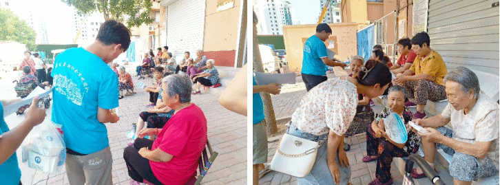 队员们通过分发调查问卷,对于能够独立作答的老年人自行填写问卷,不能独立作答的老年人则由调查员面对面访谈作答。通过问卷来了解被调查对象的基本情况、对智慧养老的认知情况、养老需求等。