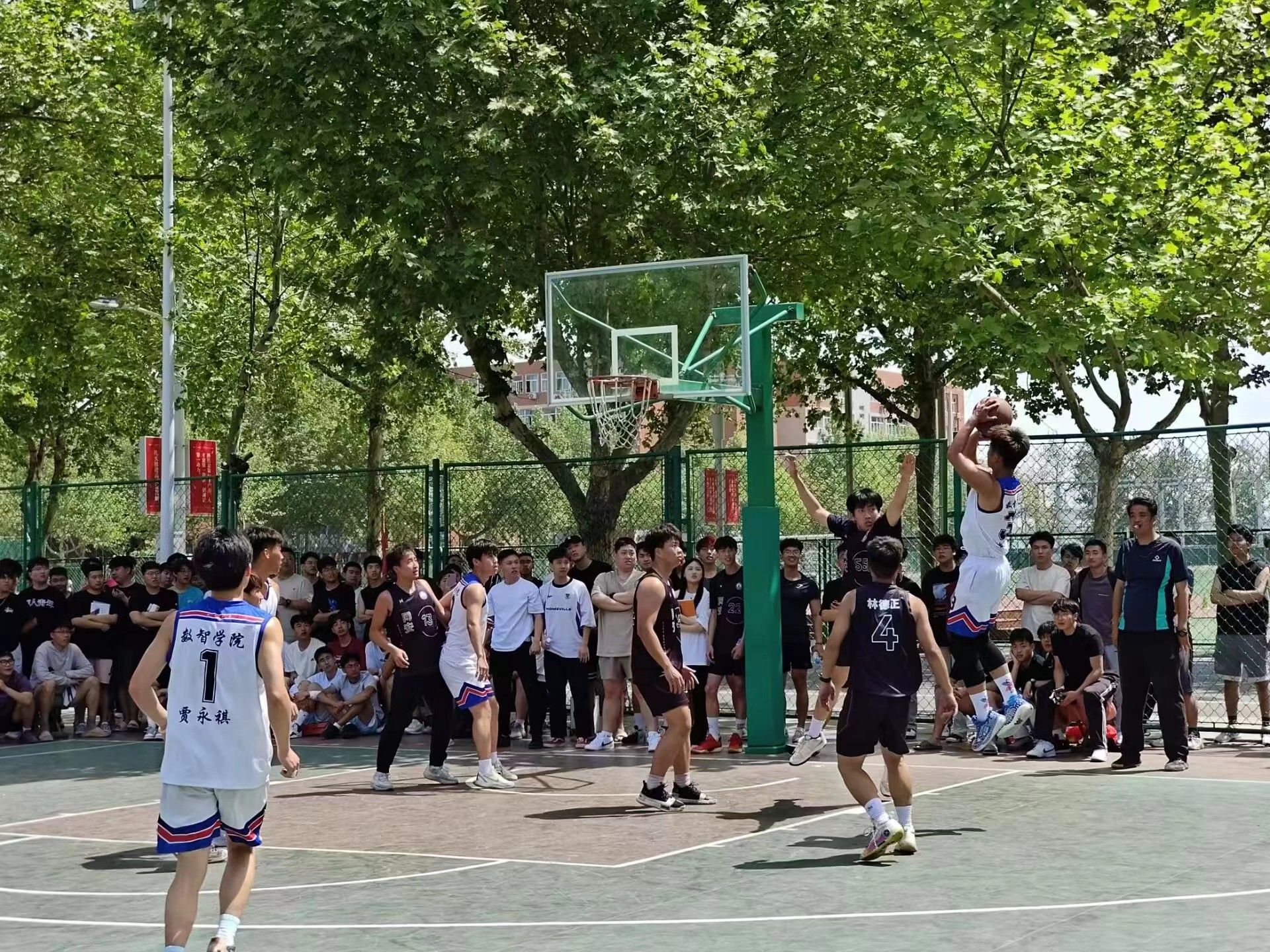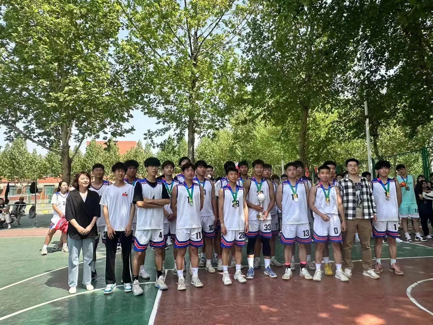 人工智能与大数据学院篮球队于2024年4月25日在第十四届篮球比赛中表现出色,最终荣获比赛亚军。人工智能与大数据学院团总支书记王珊老师与学管办主任杨家腾老师莅临现场,为球员们加油鼓气。