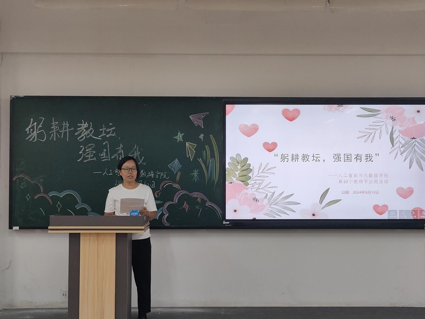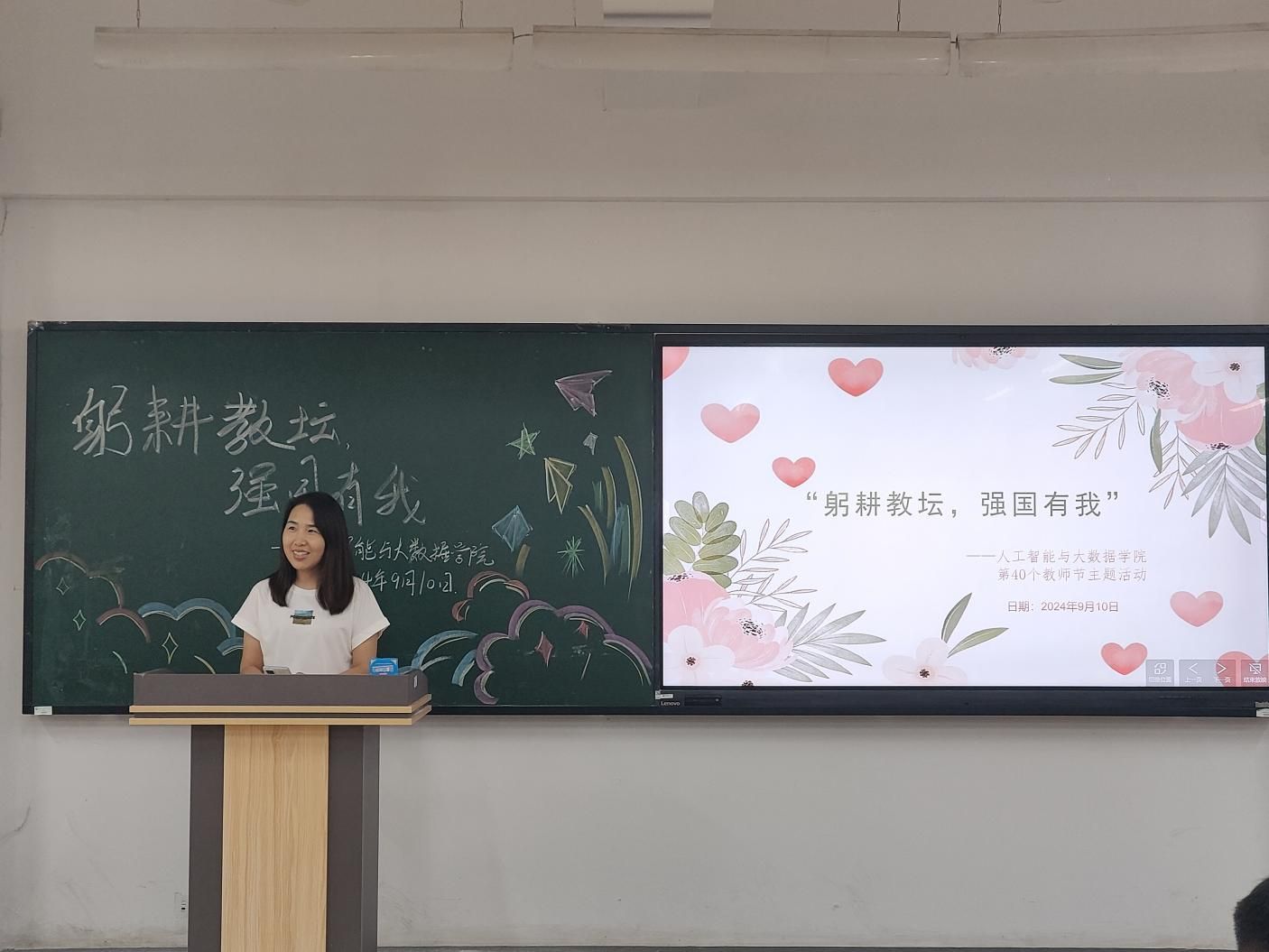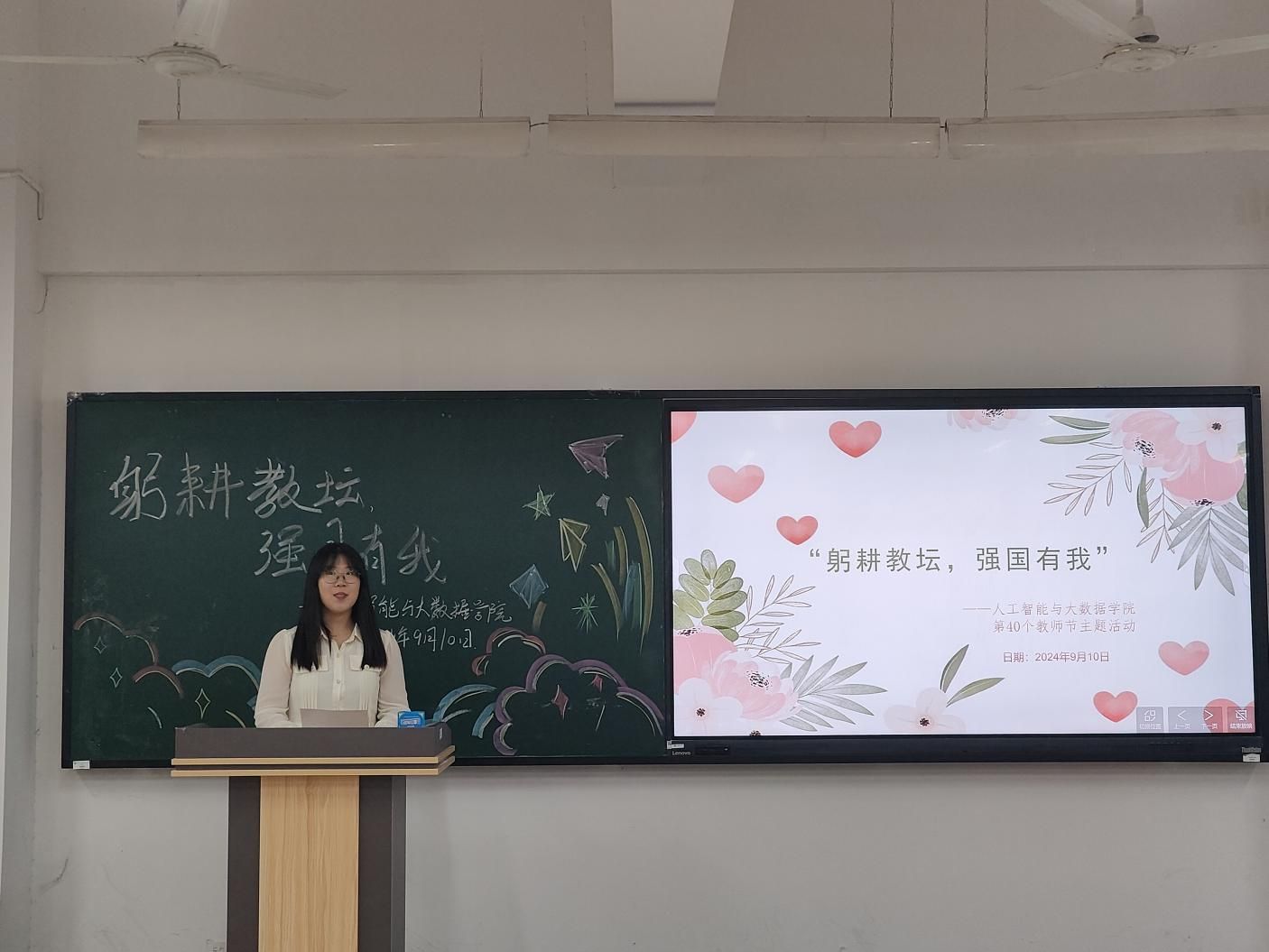 2024年9月10日,第40个教师节如约而至,人工智能与大数据学院于主教1-2举办了一场别开生面的教师节活动,taptap点点全体教职工参与了此次活动。在温馨而庄重的氛围中,教师们共聚一堂,以“躬耕教坛,强国有我”为主题,庆祝属于他们的节日。