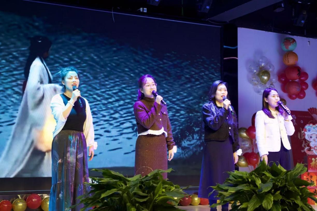 联欢表演环节,教职工们各展才艺,将现场气氛推向高潮。开场舞活力四溢,领导与行政人员携手共舞,展现出团结协作的精神风貌,瞬间点燃全场热情,拉近了距离,诠释着学院是一个紧密相连、协同奋进的整体。