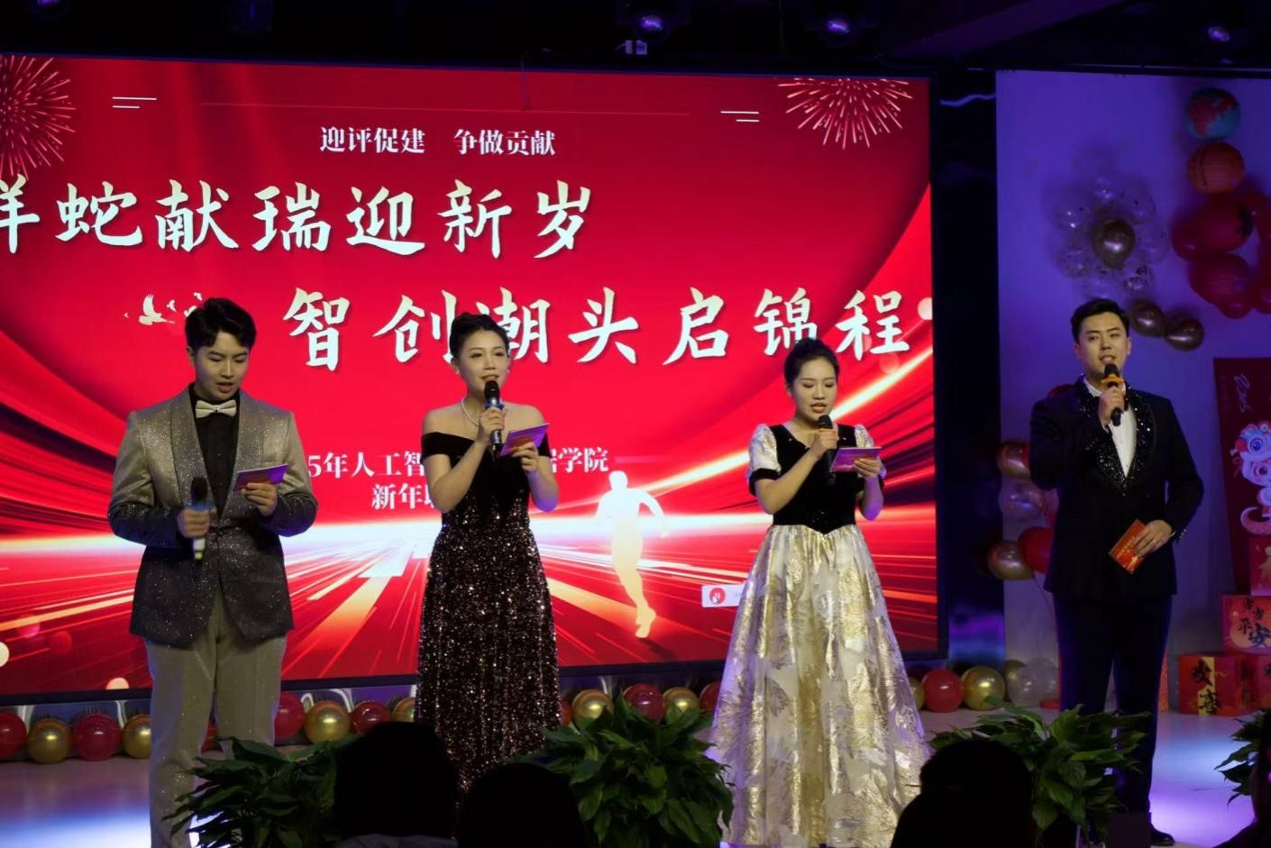祥蛇舞动,新春送福。在2025年的开端,人工智能与大数据学院成功举办了一场别开生面的新年联欢会,全院教职工齐聚一堂,在欢声笑语中回顾过往、展望未来,共谱校园温情与创新奋进的和谐乐章。
