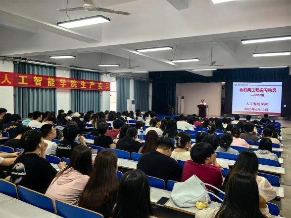6月13日动员大会在次教101隆重举行,校内指导老师、辅导员和全体学生参加了动员大会,标志着生产实习之旅正式启航。仲会娟老师强调了生产实习在整个专业学习体系中的关键地位,旨在让学生将课堂所学理论知识与实际生产应用紧密结合,深入了解物联网行业现状,提升专业技能与实践素养,为未来投身相关领域工作筑牢根基。详细介绍了实习计划安排,包括企业专家讲座、项目实操、小组研讨等丰富环节,并着重强调了实习期间的安全纪律与考勤要求,为实习顺利开展奠定规则基础。