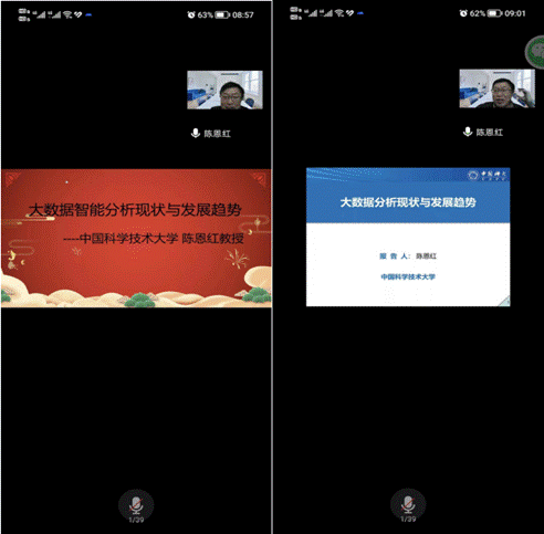 为了弘扬科学精神,让学生充分了解大数据与人工智能相关应用背景,并重点学习当前大数据智能的主要分析方法,拓展认识智能教育、推荐系统、多模态知识图谱构建等技术及其应用案例,展望大数据智能未来的发展趋势,人工智能与大数据学院于2022年12月10日上午9点组织观看河北省大数据学会开展的“大数据智能分析现状与发展趋势”讲座。中国科学技术大学讲席教授、博士生导师大数据学院执行院长,认知智能全国重点实验室副主任,安徽省计算机学会理事长陈恩红作报告。人工智能与大数据学院王院长,党总支书记兼学管副院长尹钧,教学副院长林海霞,全体老师及相关专业的学生参加此次讲座。