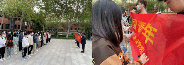 2023年4月15日,人工智能与大数据学院于孔子像前举行仪式教育活动。参与人员为团总支学生副书记段鹏飞以及人工智能与大数据学院学生代表。