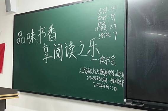 为了激发当代大学生的阅读兴趣,增长见识,完善人格,学习更多的理论知识,提高学生社交能力,营造良好的校园阅读氛围,人工智能与大数据学院于2023年4月23日组织各班级开展"品味书香,享阅读之乐"读书会。