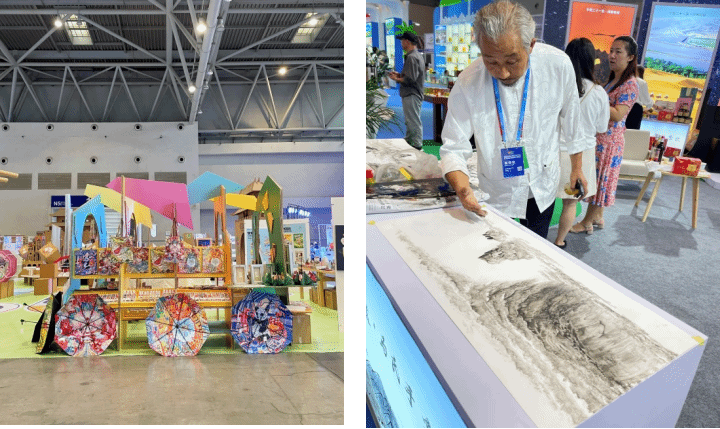博览会现场,各展区通过图文、视频、沙盘、实物、表演、裸眼3D、全息投影、AI技术等多种形式,集中展现自然风光之美、历史人文之美、民族风情之美,覆盖旅游全要素资源,为游客提供全球旅行的信息咨询、互动体验等服务。