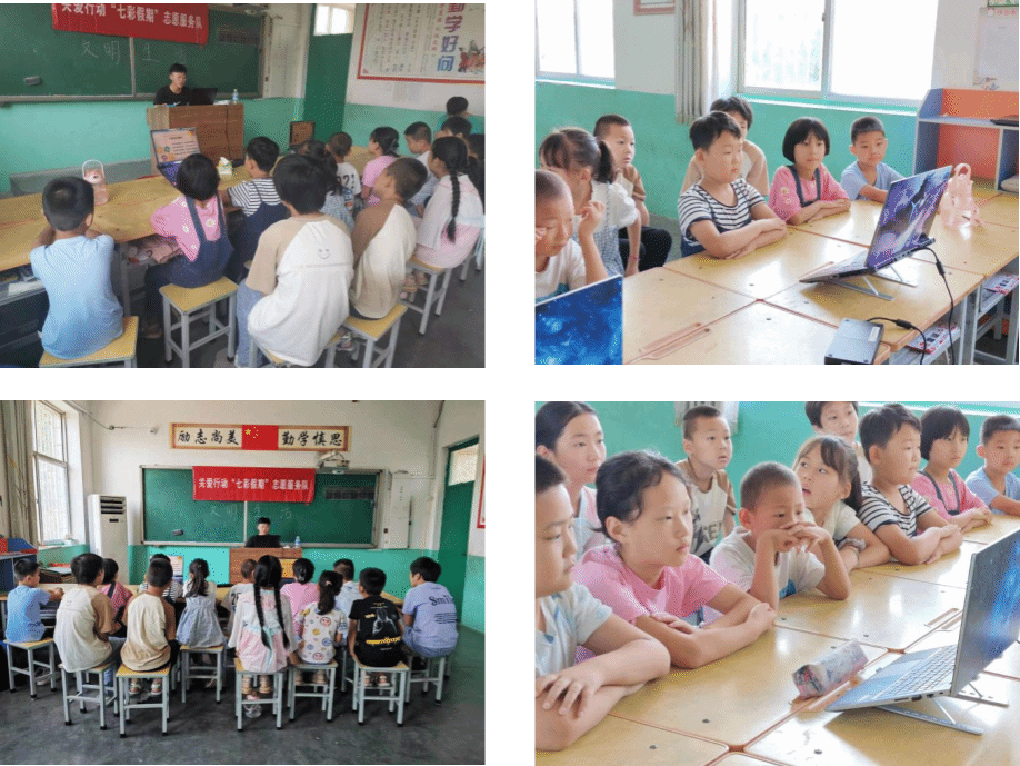 由人工智能与大数据学院党总支书记兼学管副院长尹钧团总支书记王珊老师以及人工智能与大数据学院辅导员杨思宇老师所带领的“小智公益团队”于2023年7月18日在曹家庄小学开展“七彩假期”暑期志愿活动第二期。