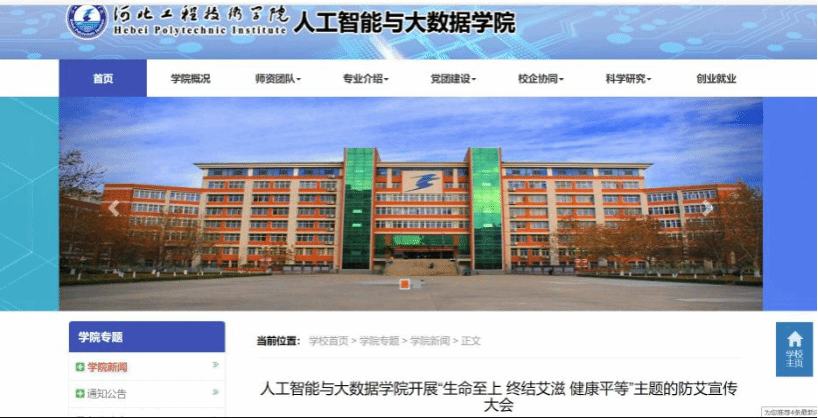 (1)人工智能与大数据学院于2022年11月29日在学校官网发表防艾宣传,倡导文明健康行为,践行健康生活方式。
