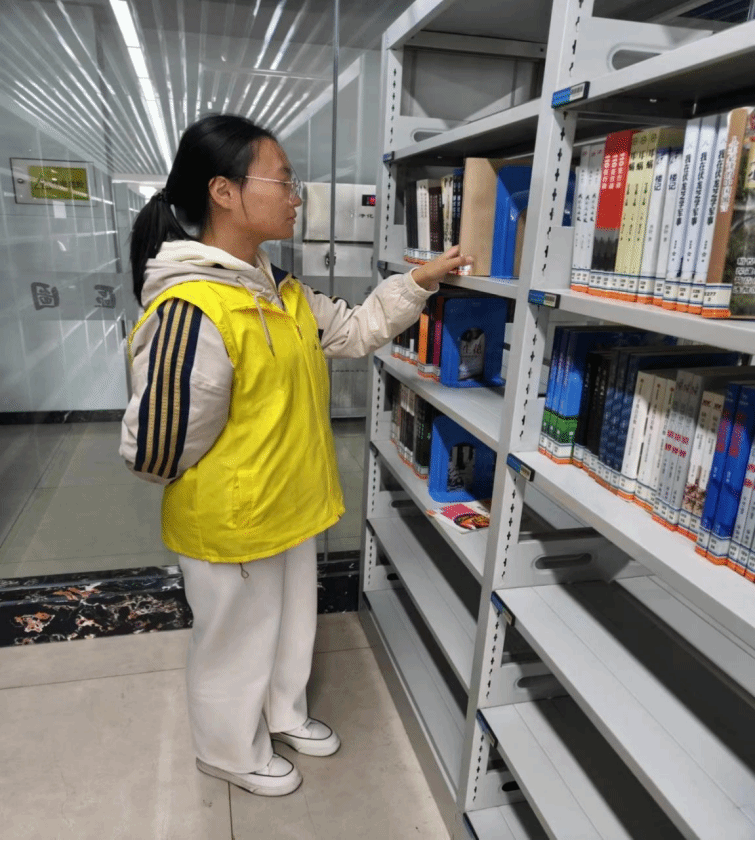 志愿者们在知识的熏陶下积极参与工作,到达不同的岗位后,在相关工作人员的指导下,深入了解自己的具体职责,学生们按照顺序摆放书籍,以认真负责的态度在相关区域内开展工作,志愿者们体会到了图书馆工作者的辛苦,也践行了奉行的真谛。