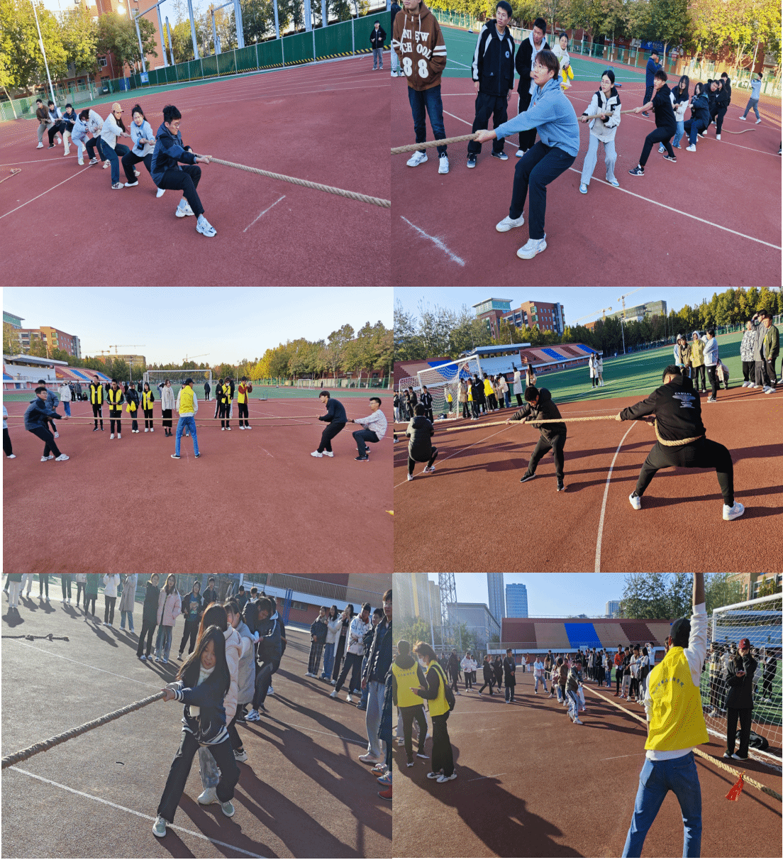 为了丰富同学们的课余生活,增强身体素质,培养团队合作精神,特此,人工智能与大数据学院学生会于2023年11月12日在操场上举办了一场激动人心的拔河比赛活动。此次比赛不仅为学生们提供了一个展现团队合作精神和力量的舞台,也进一步加强了学院各年级、各专业之间的交流与联系。