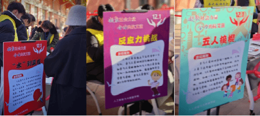 本次活动形式丰富多样,主要包括投壶游戏、课桌滚滚、掷“艾”有声、反应力挑战、五人接棍、“水”到渠成、防艾板签字等环节,学生通过参与活动,获得活动印章,集齐印章即可兑换精美小礼品。taptap点点志愿者们在活动中,向现场同学们发放艾滋病防治宣传手册并进行同步讲解,普及防艾相关知识。