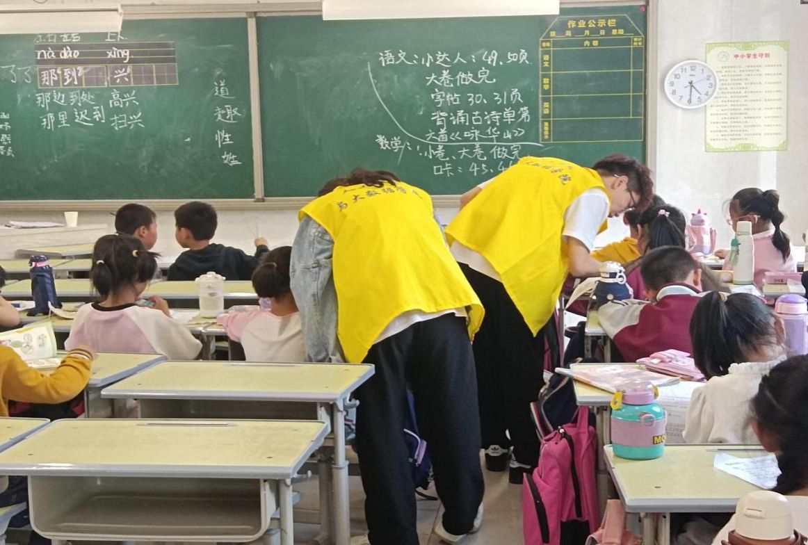 为民奉献,是青春最亮丽的底色。放学之后,留校托管的小学生会在教室里安静自习,而志愿者们则会充当起教师的角色,辅导学生的课后作业,帮助学生解答一些作业中出现的问题,监督学生学习并维持教室的纪律,营造舒适的学习环境。在辅导学习时,志愿者可以将课堂上学到的理论知识应用到实践中,这不仅加深了志愿者对知识的理解,还提高了志愿者的实践能力,从而能在志愿服务中学习到新的技能。