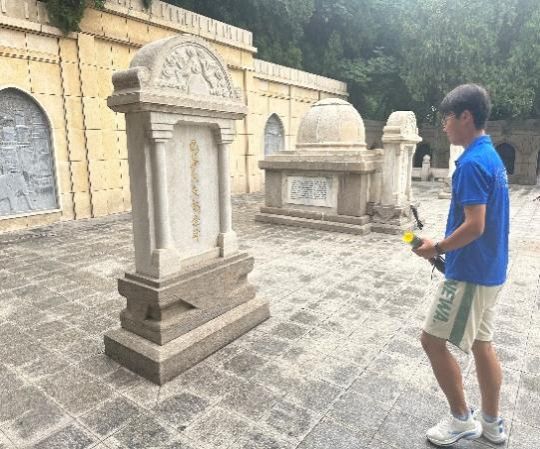 赤遗探索团在烈士墓区内庄严献花,以怀先烈