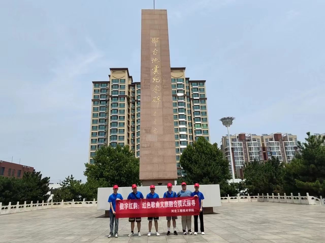 1966年3月8日邢台发生了6.8级地震,周总理前后三次来到邢台地震灾区指导救灾工作,并制定了“自力更生,奋发图强,发展生产,重建家园”的十六字救灾方针,目前被雕刻在纪念碑背面。五十余载春秋更替,历史的尘埃或许已轻轻覆盖了那些惊心动魄的瞬间,但邢台人民在灾难面前展现出的坚韧不拔、众志成城的精神,却如同这纪念碑一般,永远矗立在人们心中,成为激励后人前行的力量。面对抗震纪念碑,队员们心中涌动着无尽的哀思并进行了默哀仪式,全场陷入一片沉寂,大家心中默念哀悼之词,表达对逝者的深切怀念和无尽哀思。