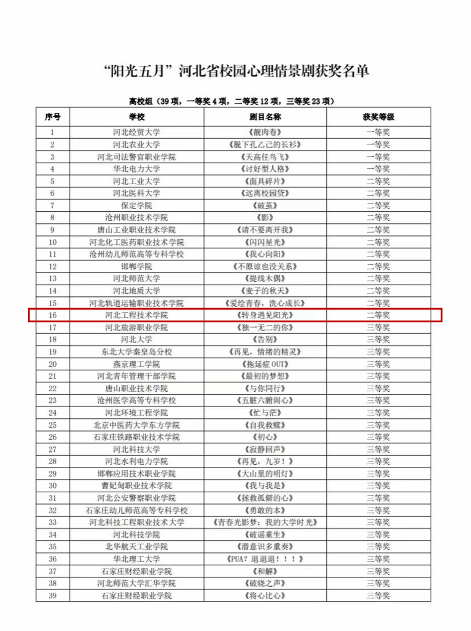 人工智能与大数据学院心理健康协会根据学校关于“5·25心理健康月”相关文件精神,由taptap点点精心打造的校园心理情景剧《转身遇见阳光》荣获省级二等奖。此次获奖不仅彰显了taptap点点在人才培养方面的卓越成果,更丰富了taptap点点心理健康教育实践的形式,营造了积极向上、和谐健康的心理健康氛围。