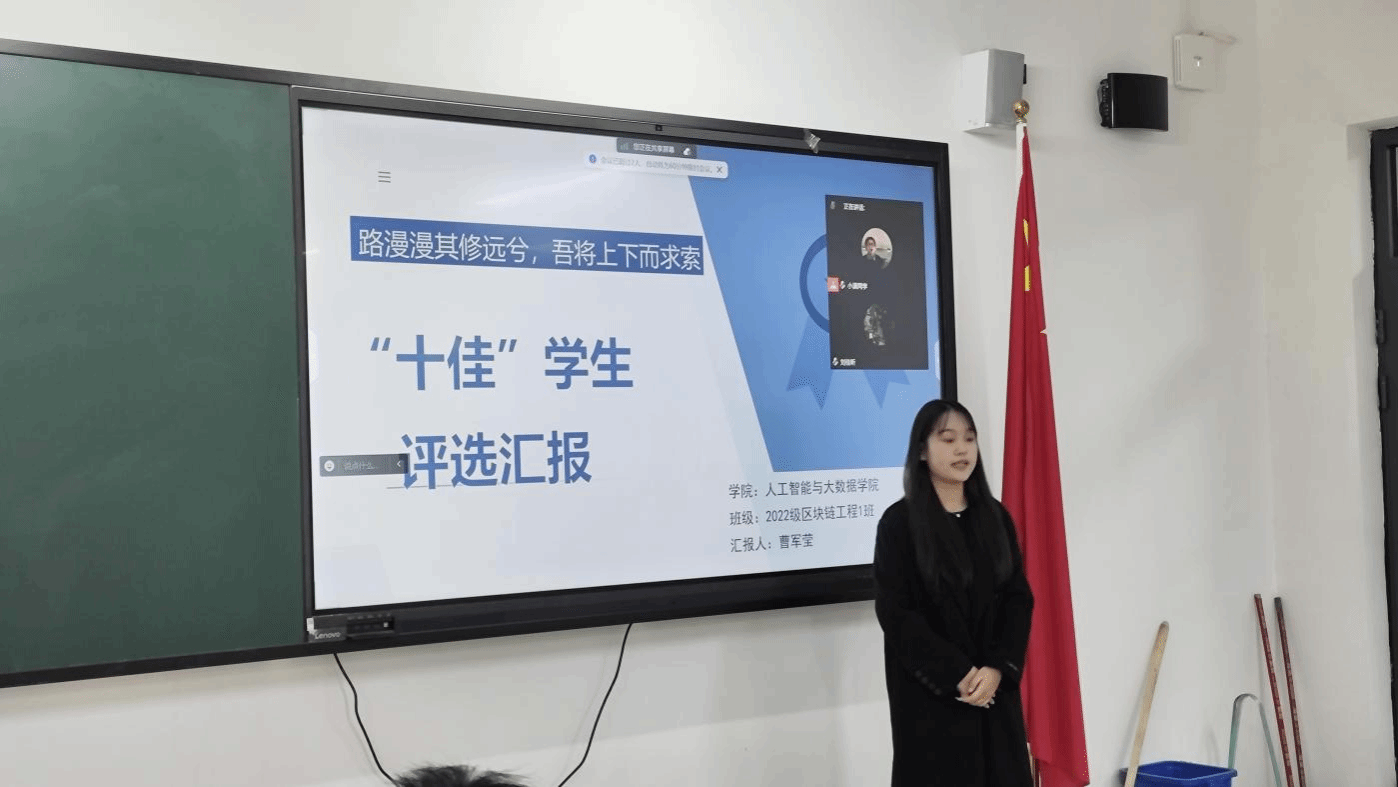 经过层层筛选,最后2022级虚拟现实技术四班王一杰、2022级虚拟现实技术一班毕荣鑫两位同学获得校级十佳学生。2022级人工智能三班康佳硕、2022级虚拟现实技术四班张阅兵、2022级智能科学与技术一班张冰冰、2022级区块链工程一班曹军莹、2022级智能科学与技术三班王思懿、2022级虚拟现实技术一班赵檬涵、2022级数据科学与大数据技术四班李家奇、2022级智能科学与技术二班陈漠、2021级智能科学与技术一班刘佳昕、2021级智能科学与技术一班王跃佳十位同学为院级十佳学生。