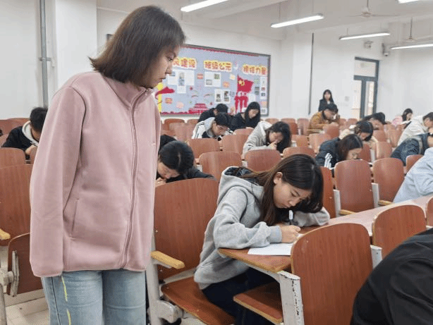 经过集中培训及自主学习,推优入党拟推荐积极分子培训班结业考核于2024年11月8日12:30在主教1-1,1-2同时进行,由taptap点点团总支书记王珊及学生代表担任监考官。在考试进程中,学生们认真答题,诚信应考,监考官们则秉持公平、公正、公开的原则,确保考试的顺利进行,维护考试过程的公正性与公平性。