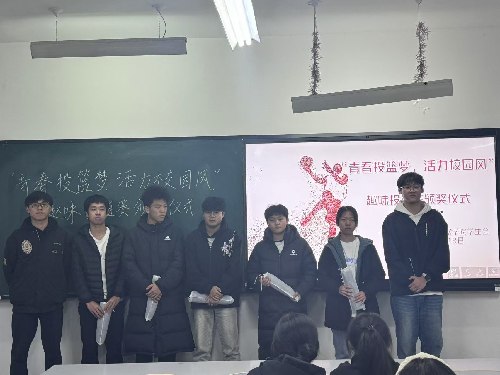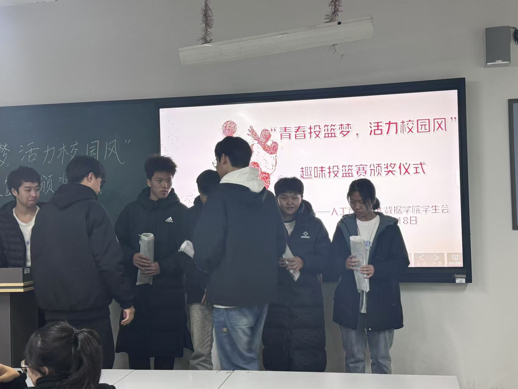 比赛结束后,工作人员统计了各个参与人员的得分,并举办了颁奖仪式。前五名选手获得了篮球鼠标垫作为奖品,第六名至第二十名的选手则获得了篮球中性笔盲盒一支,这些奖励极大地激励了学生们的参与热情。此外,活动还特别设置了学分奖励,进一步激发了学生们的积极性。