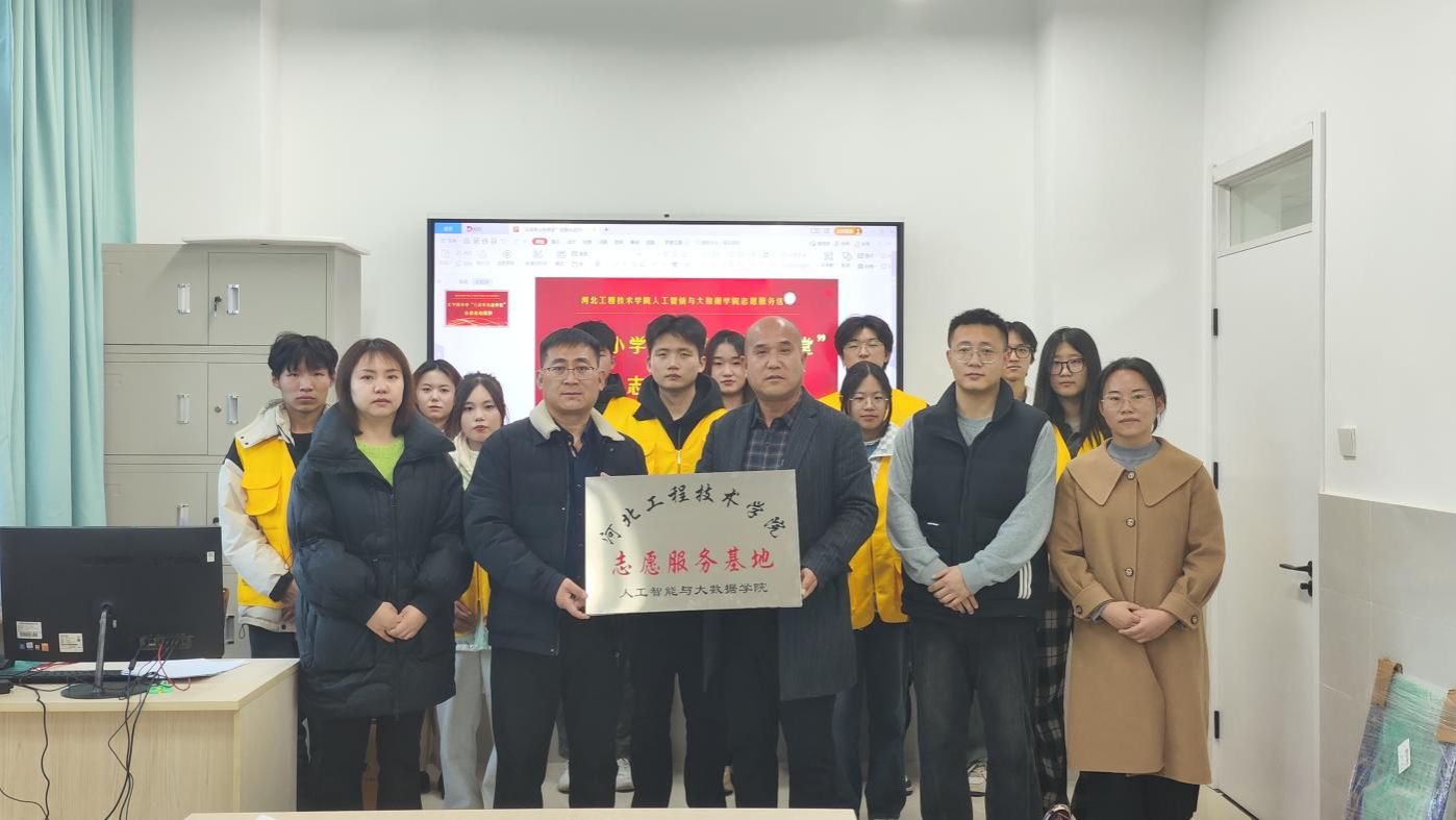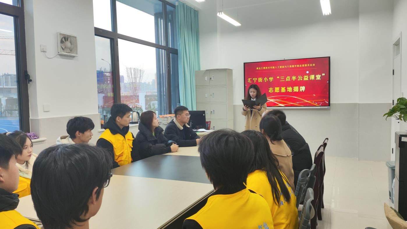 2024年12月6日,人工智能与大数据学院与石家庄市汇宁街小学于汇宁街小学会议室开展“三点半公益课堂”志愿服务基地揭牌仪式。参与此次会议的人员有人工智能与大数据学院党总支书记、学管副院长尹钧,团总支书记王珊,石家庄市汇宁街小学校长王生军,石家庄汇宁街小学教师代表以及人工智能与大数据学院青年志愿者协会学生代表。