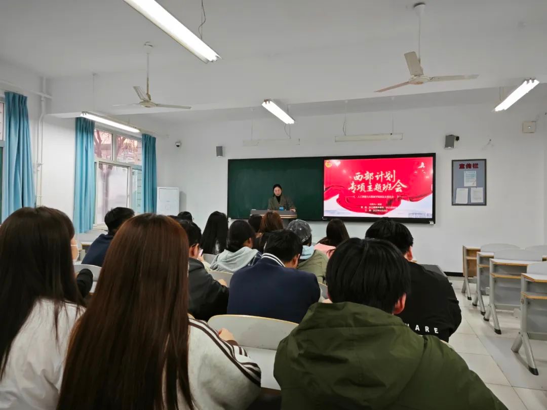 本次学院全体西部计划专项主题班会,不仅让全学院学生们都了解了关于西部计划的政策和报名信息,也为有志于投身西部建设的青年学子指明了方向,帮助他们更好地了解西部地区的发展需求和机遇,激发了他们对于参与国家西部大开发战略的热情和兴趣。