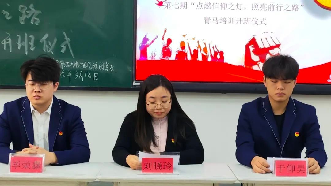 2025年3月23日中午,人工智能与大数据学院"点亮信仰之灯,照亮前行之路"第七期青年马克思主义者培养工程开班仪式在主教1-2举行。此次开班仪式参与人员有辅导员刘晓玲、团总支学生副书记毕荣鑫、青马学校管理中心主任于仰昊,全体青马辅导员监督员及培训班学员。