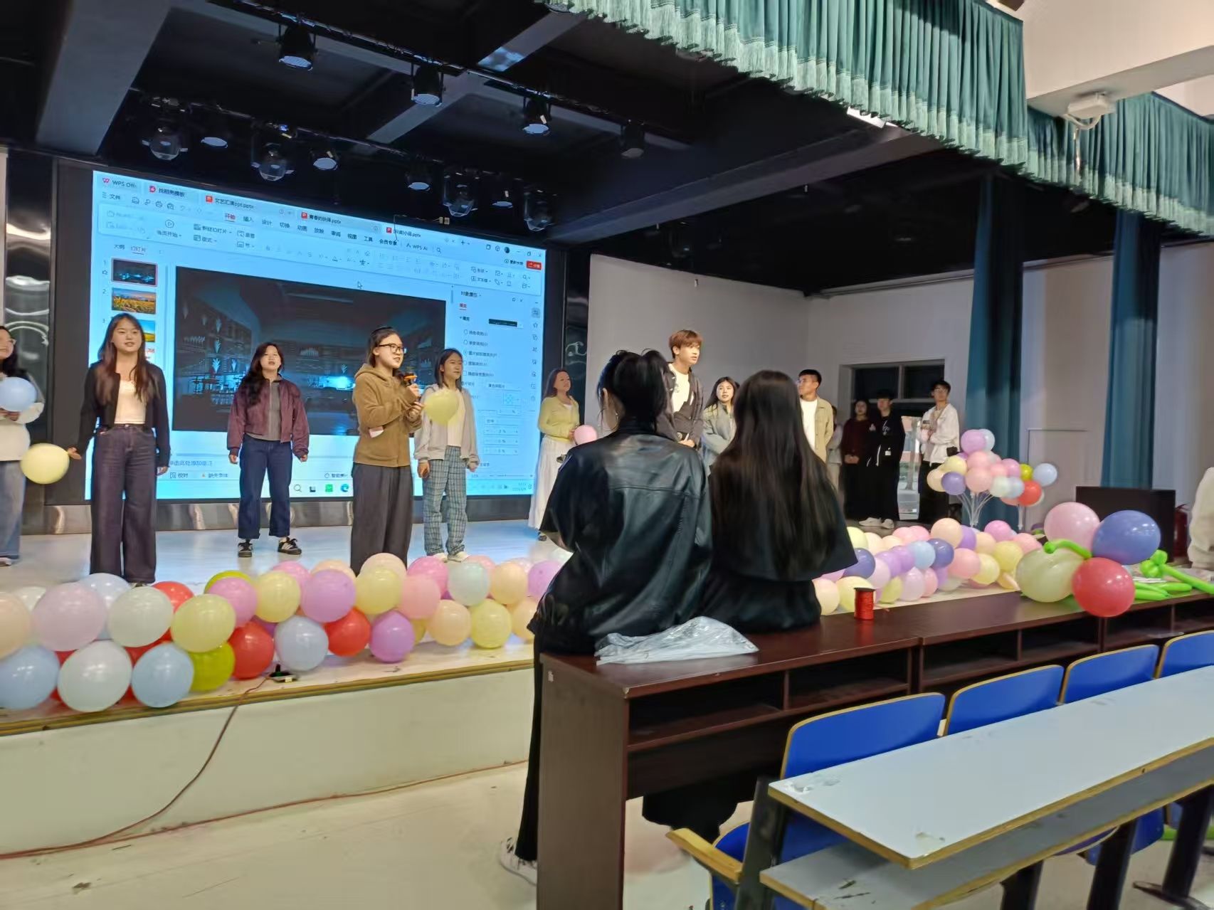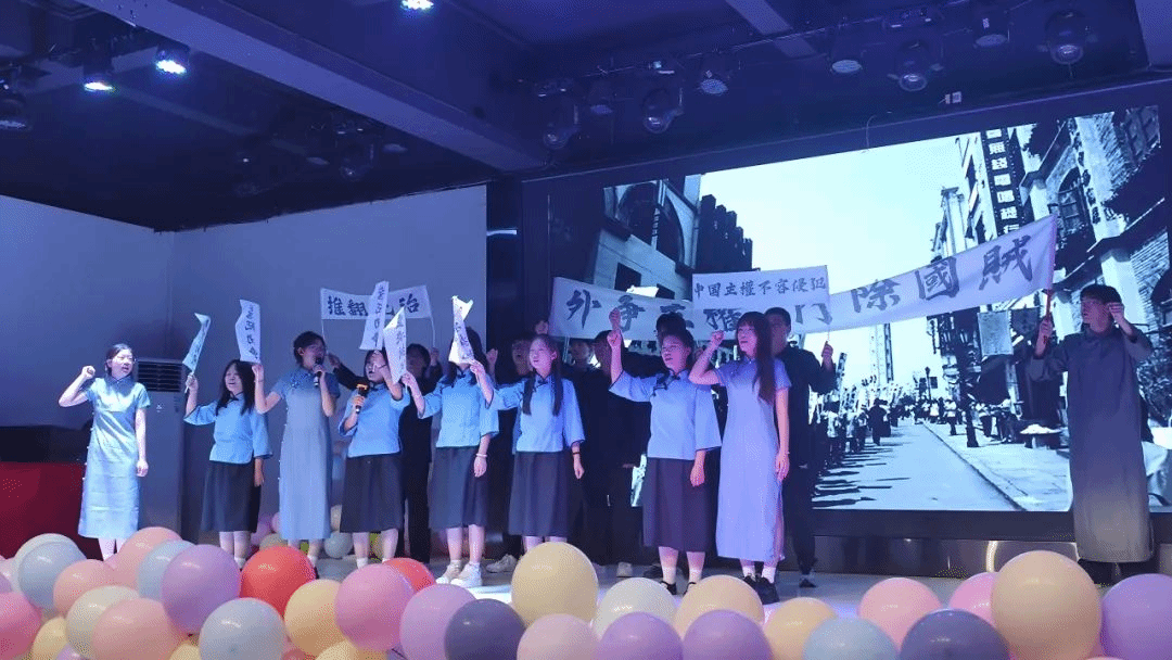 为了呈现这场精彩的五四晚会,学生们利用课余时间,不断练习,从话剧的每一句台词到歌曲的每一个音符,都力求完美。在彩排现场,学生们在美育工作部的陈艾老师和都奕林老师的悉心指导下,精心雕琢每一个细节,从握话筒的姿势到表演时的队形走位,不断磨合与调整,只为在舞台上展现出最佳的自己。
