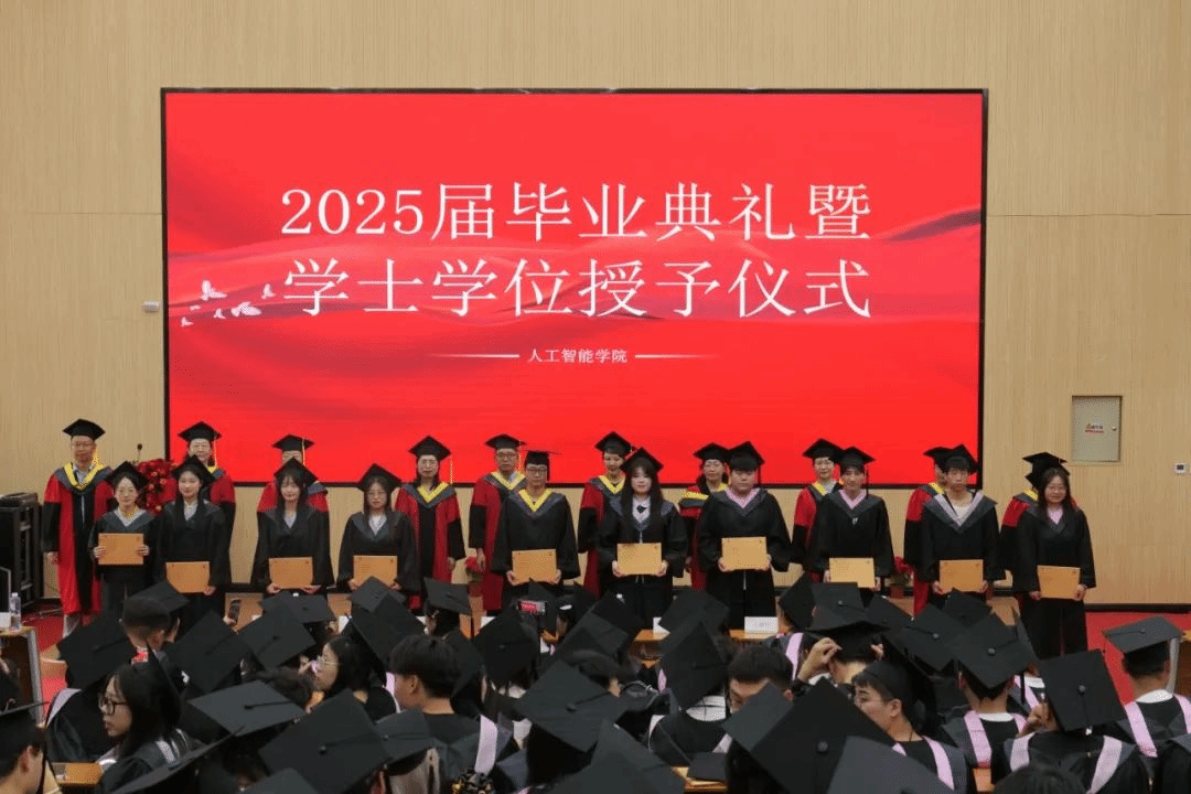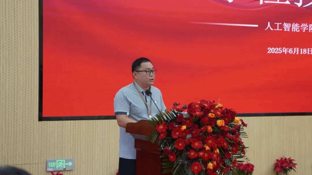 毕业典礼上,教师代表田慧龙以“技术温度与人文情怀”为引,分享行业前沿智慧,台下学子目光灼灼。随后,毕业班辅导员刘宠登台,眼中满是对学生的不舍与期许,他动情回忆师生共度的奋斗时光:挑灯攻克代码的执着、团队协作突破创新的欢呼,每一幕都是青春注脚。“你们是人工智能时代的弄潮儿!”他的高呼如战鼓,引爆全场掌声。毕业生代表刘睿则以专升本两年的科创经历,诉说对母校的感恩,其青春宣言点燃全场斗志,让学子们眼中闪耀着感动与奋进的光芒。