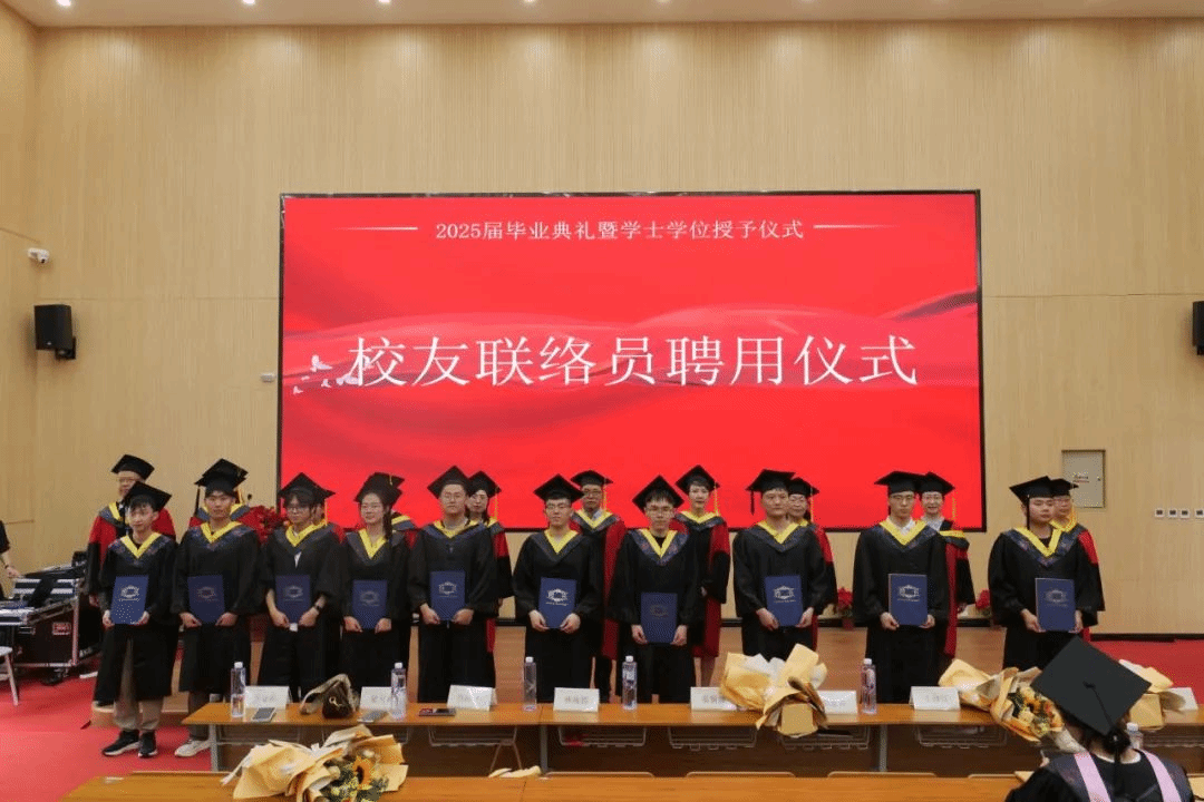 在学位授予仪式庄严的氛围中,领导与教师们怀着殷切期许,郑重地为毕业生逐一拨穗正冠。这一仪式不仅是对毕业生学业成就的加冕,更承载着对其未来征程的深切嘱托。校友联络员聘用证书的颁发,搭建起母校与校友间稳固的情感桥梁,让彼此的羁绊在岁月中愈发深厚绵长。而毕业生献花环节,学子们手捧鲜花,满怀感恩之情走向恩师,泪水与拥抱交织,定格下师生情谊最真挚动人的永恒瞬间。