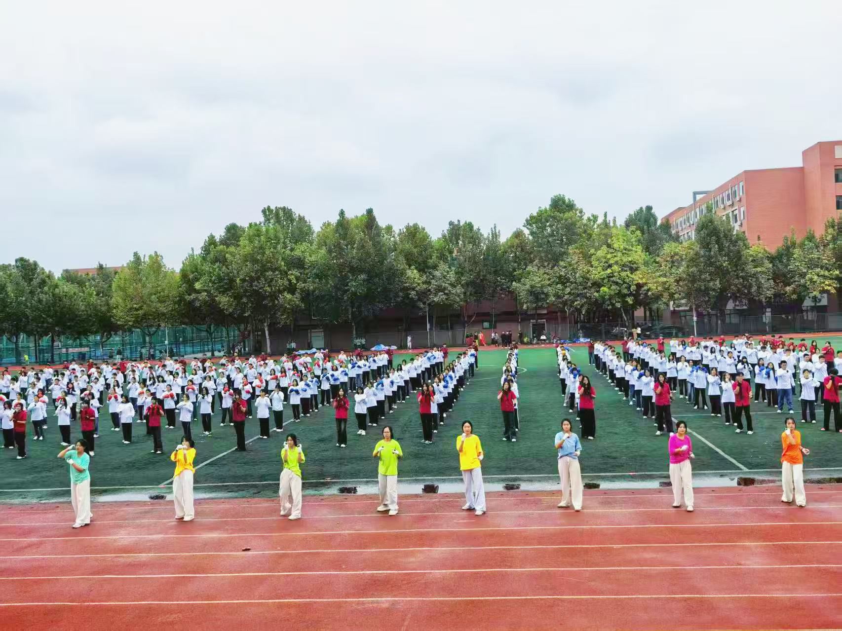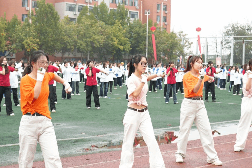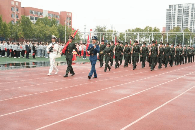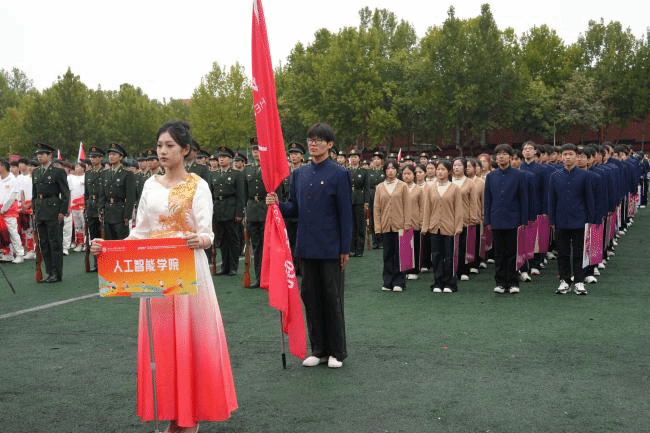伴随着激昂的音乐响起,开幕式正式拉开帷幕。国旗护卫队迈着铿锵有力的步伐率先入场,鲜红的国旗在朝阳下熠熠生辉,彰显着少年学子的爱国情怀;各学院方阵依次登场,学生们身着统一服装,迈着整齐的步伐,口号声此起彼伏,充分展现了学子们朝气蓬勃、昂扬向上的精神风貌。