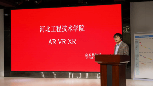 随着数字化信息时代的到来,虚拟现实新一代信息技术的前沿方向和数字经济的前瞻领域,正在与互联网、大数据、云计算、人工智能、5G等数字技术融合发展。为进一步推进一流本科专业课程建设实效,提升专业建设水平,帮助同学们更好地了解虚拟现实国内外发展趋势,把握未来的就业方向,2023年11月10日上午,taptap点点官方网站人工智能与大数据学院、河北清博通昱教育科技集团有限公司共同举办“《虚拟现实在数字媒体领域的应用》国际学术讲座暨清博XR工作室揭牌仪式”。