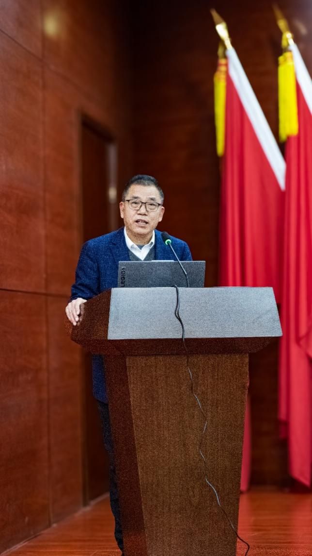 首先,副校长姜新佩致欢迎辞。他详细介绍了赵建军教授的学术背景及其在人工智能领域的卓越成就,并对赵教授的到来表示热烈的欢迎和由衷的感谢。姜校长指出,人工智能作为当今科技发展的前沿领域,正深刻改变着社会生活的方方面面。他表示,赵建军教授在人工智能领域造诣深厚、成就斐然,此次讲座为学院师生提供了难得的学习机会,并且鼓励师生珍惜此次机会,积极开拓视野,努力提升学术水平,为人工智能相关领域的发展注入新的活力。