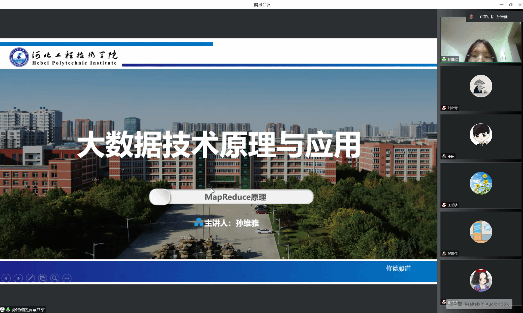 我系孙维雅老师的参赛的课程是《大数据技术原理与应用》,孙老师围绕“以学生为中心”的教育理念开展教学设计,以说一次课的形式进行了详细的讲解,课程中融入了当前的社会热点,这是我们值得学习借鉴的。
